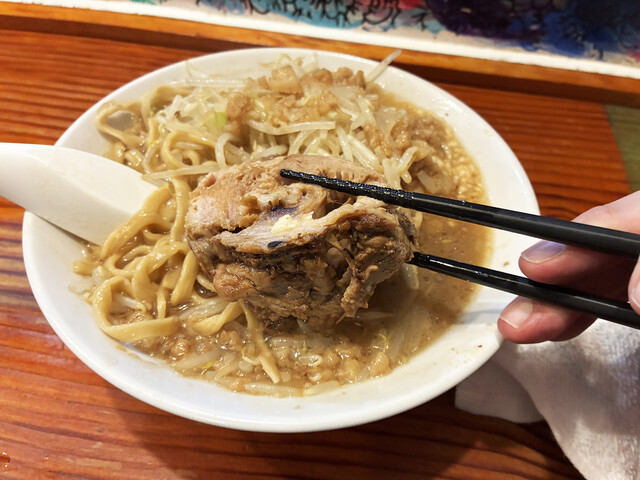 また、この日は私が一番乗りだったためか、豚(チャーシュー)は端ながらも物凄い厚さにカットしてくださいました。