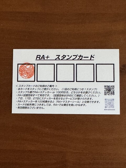 定番の特製煮干しらーめんとRA+シール特典で肉いりご飯を頂きました。