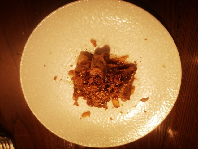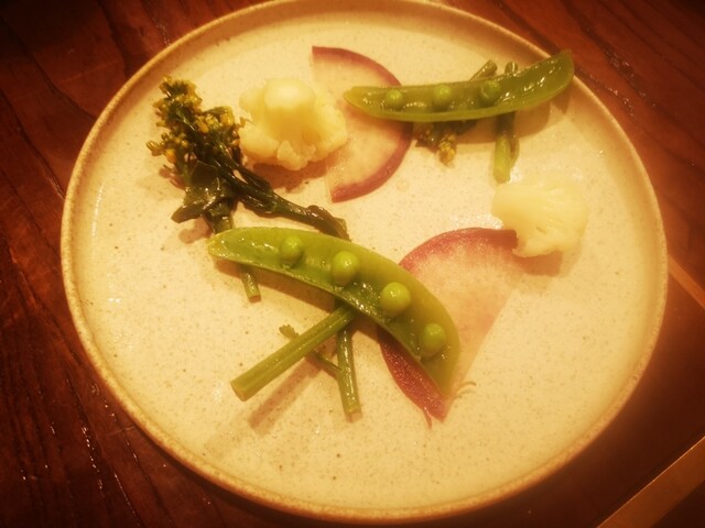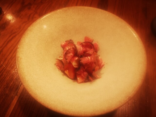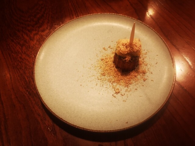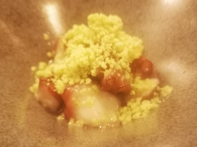 56℃で火入れしたタコとなす フェンネルのアイスを添えて