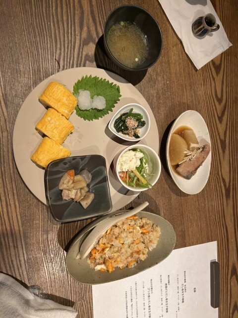3度目の訪問。鳥唐揚げと出汁巻玉子御膳1200円、追加で和チャーハン200円を注文。小鉢が毎回違うがとても丁寧な仕事がみえて素晴らしい。出汁巻はワンオペなので作り置きしたら?と聞いたが、作りたてが美味しいので、とのこだわり。ふわふわでこれも美味しいです。和チャーハンは1膳以上あり、以外に腹に溜まります。唐揚げは二度上げでサクサク、自家製醤油とニンニク生姜のしっかりとした味。食べた後も記憶に残ってます。全体に量足りるかな?と思いましたが、腹一杯です。ごちそうさまでした!
