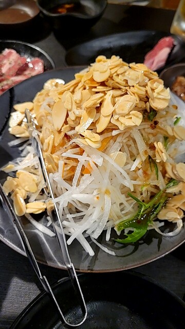 アーモンド大根サラダ。大根サラダに柚子ベースのドレッシング。スライスアーモンドがかなりどっさりとトッピング。野菜にナッツ系の歯ごたえ合うのかしら?と思いながらいただくが割とマッチしています。