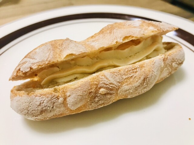 それから普段私が行くときはフランスパンが使われていることが多いのですが、今回はフワフワパンに挟まれたミルクスティックでした。