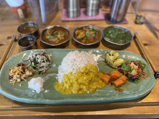 優しい味のサンバルに酸味の効いたラッサム、優しくマイルドなダールとカレーとライス、マサラオムレツを一緒に食べる楽しさは最高!その他の副菜もレベル高い美味しさで、どの組み合わせで食べても美味しいので、食べ進むうちにワクワクが止まらなくなってきます。