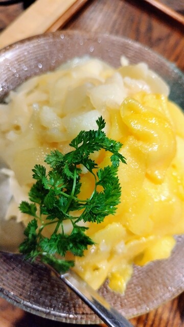 最後は凍った白桃と黄桃ののったかき氷でさっぱり〆られました。