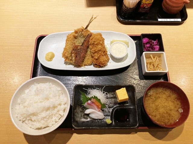 結局、アジフライ&ホタテフライ定食をお願いしました。1180円。