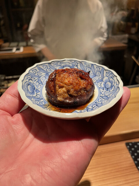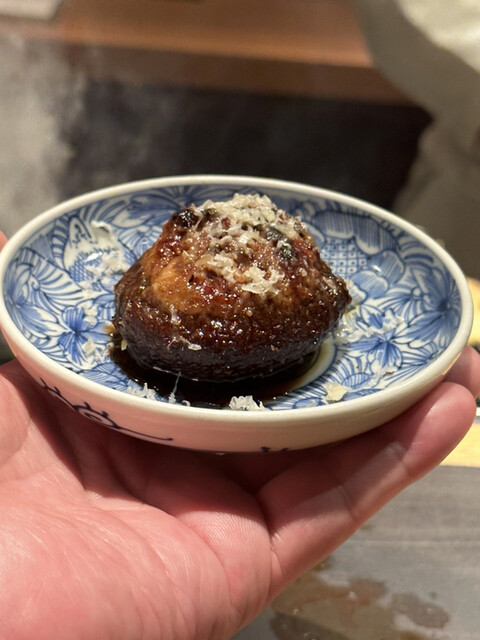 特大のエルフラです!白身がぷっくり、黄身はとろーりで、つくねと一緒に頂く事を推奨下さり、頂きますとなる程納得のお味でした。
