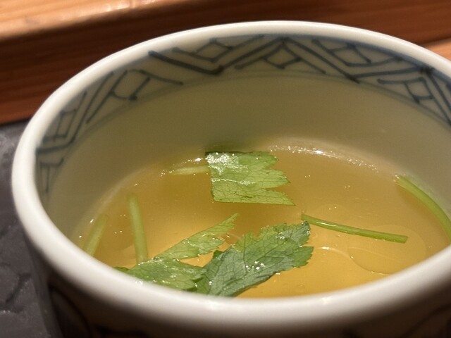 信州黄金軍鶏胸揚げ出しの鴨出汁スープ椀