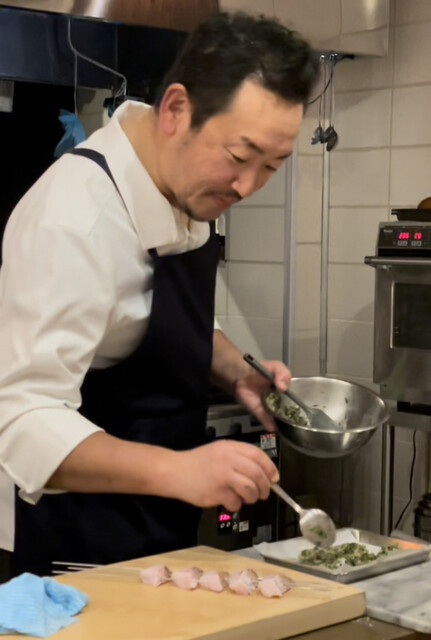 炭で炙る際に、黒穴子の余分な脂や水分を丁寧に拭き取りながら仕上げます!