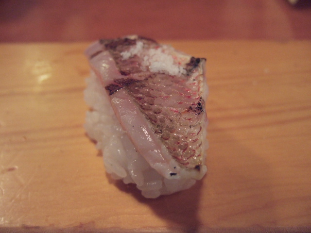 すると旬の地魚、のどぐろの炙り、白子、鯛の昆布〆、