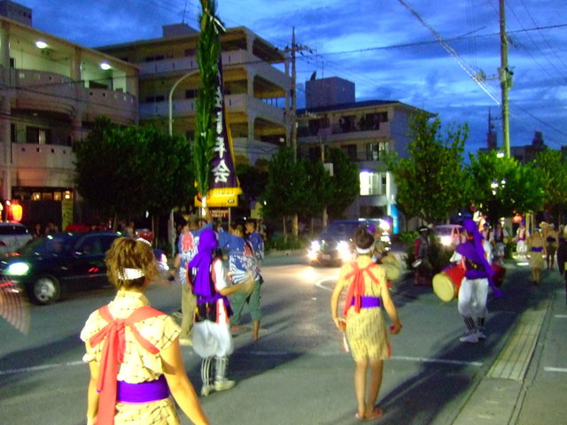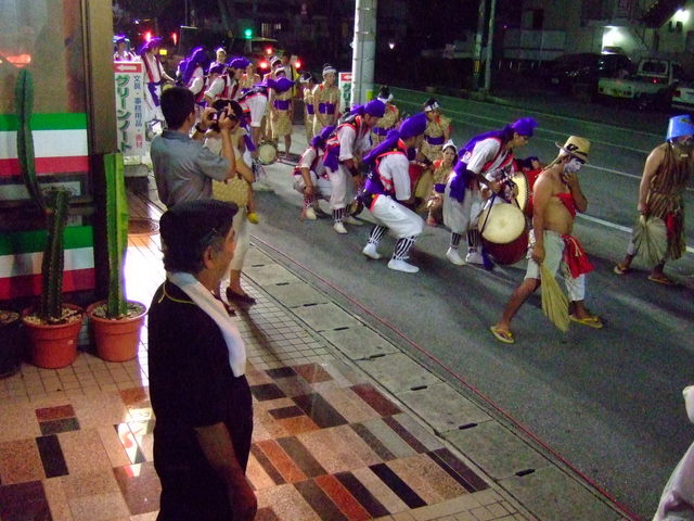 お盆でしたので地元青年会のエイサーが店前で演舞をしていましたね。