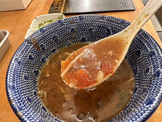 ●スープは、トマトが入っていてあっさりした冷たい濃厚な醤油スープでイタリアン風の感じがして女性に好まれそうな味で非常に美味しかったです。