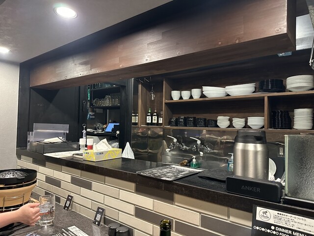 ●店内は、やや大きめな音量のBGMで流れていて、左側にカウンター席(6席)と右側に4人テーブル席(2卓)と2人テーブル席(2卓)があり店内が明るくて新しくて良い雰囲気がしました。