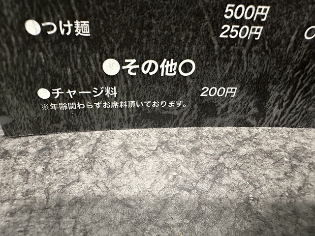 ●女性店員に確認したところ飲食代とは別に年齢に関係なく別途「200円」のチャージ料が発生します。