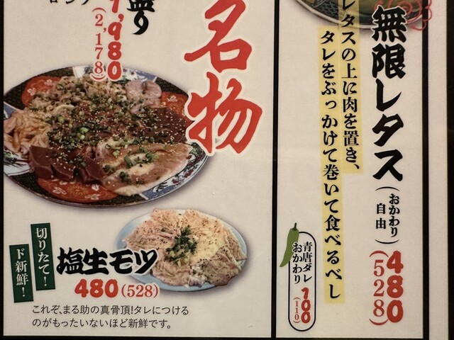 ●料理は、「無限レタス528円」「レバー528円」「なんこつ572円」を頂きました。