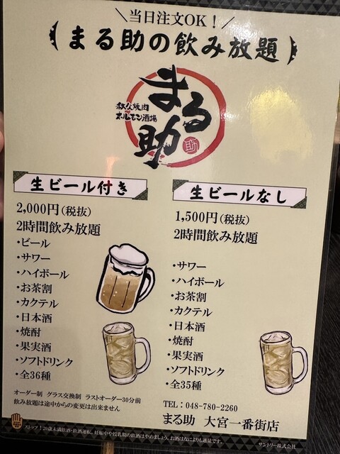 ●今日の夜は、LINEで「2時間飲み放題854円」の情報を頂き、群馬県高崎市連雀町136 山水苑ビル 1F(高崎駅西口)にある『焼肉ホルモン酒場 まる助 高崎店』さんへホットペッパーグルメでネット予約をして訪問しました。