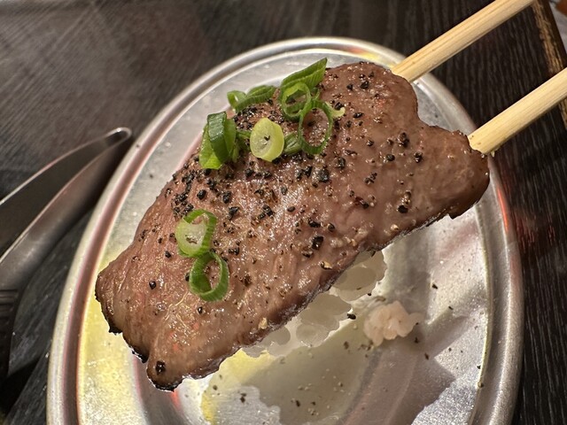 ●店員にお勧めされた「炙り肉寿司2貫968円」を頂きました。
