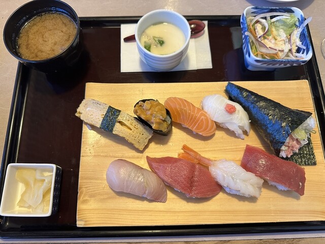 【2026.1.12(月)】ランチ贅沢セット(寿司+野菜サラダ+味噌汁+茶碗蒸し+ガリ)1,694円