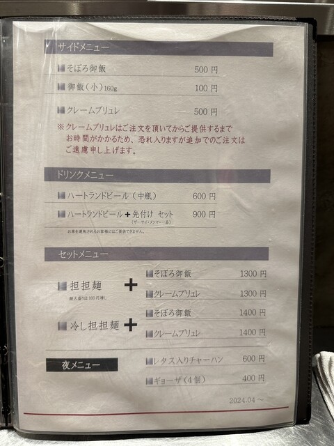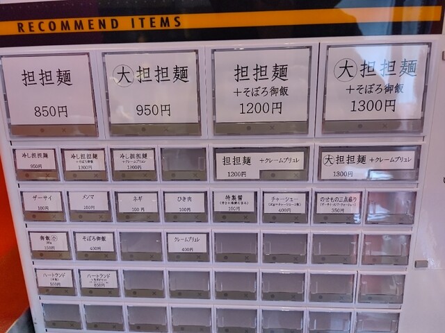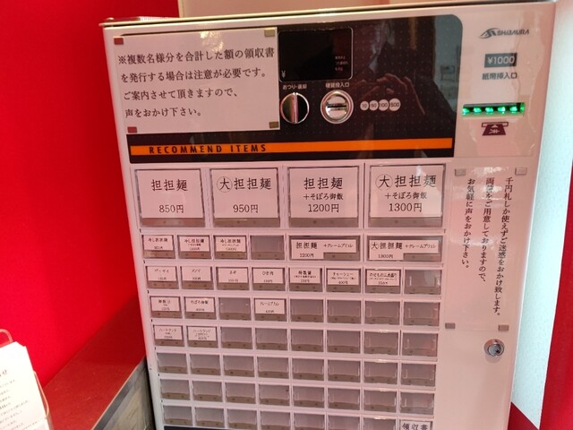 ●今回は、【担担麺(並盛・140g)+クレームブリュレセット1,200円】の食券を店員に渡して写真撮影の許可を頂きました。