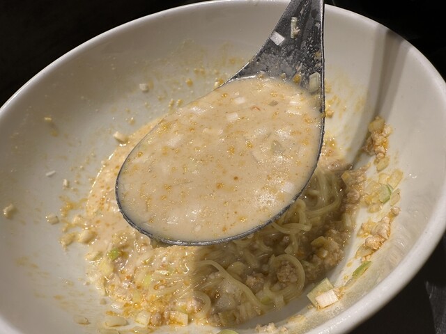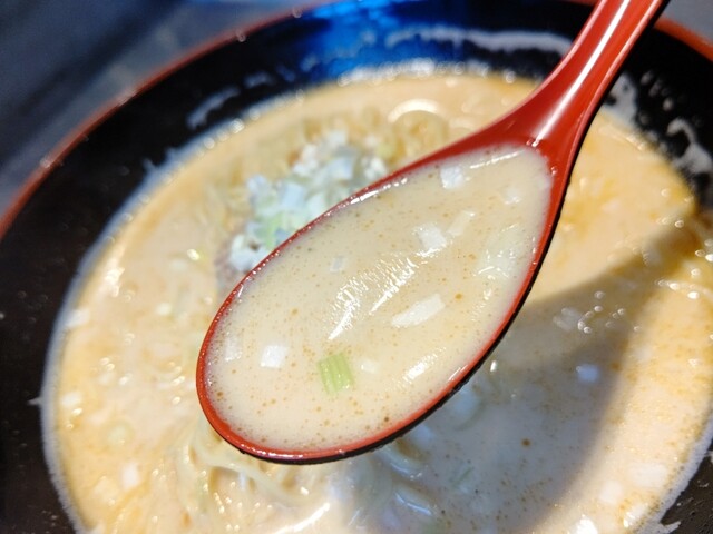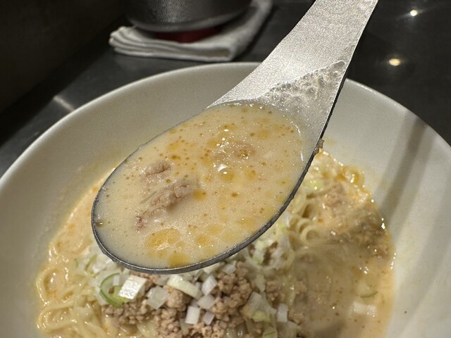●スープは、クリーミーで甘くて口当たりの良い少しピリ辛の担々麺スープで非常に美味しかったです。