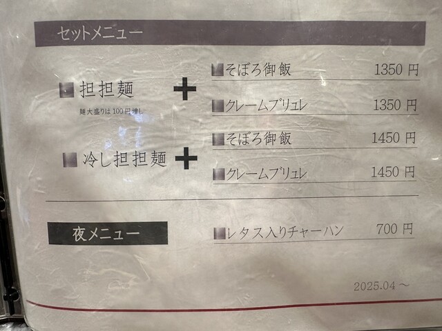 【2025.6.5(木)】冷し担担麺(並盛・180g)+そぼろ御飯セット1,450円
