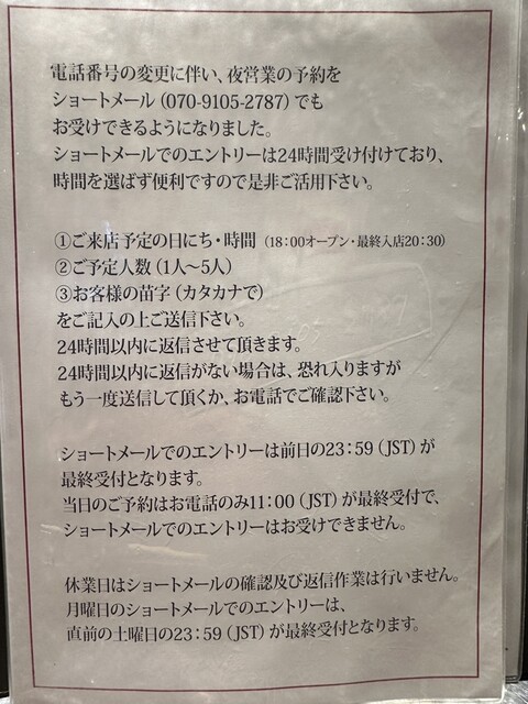 【2025.6.5(木)】夜の営業は予約制