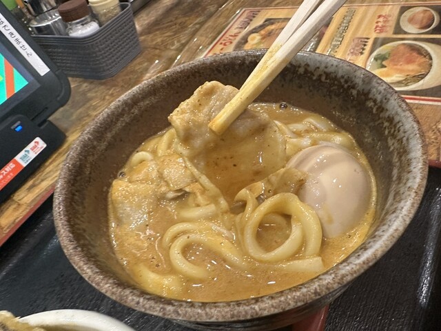 【2024.12.3(火)】豚カレーうどん(並盛・350g)の味玉