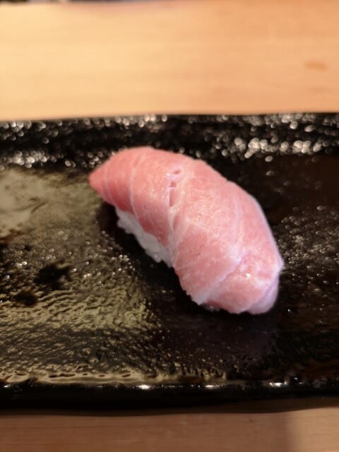 提供されたお寿司を食べながら炙り金メを一人3貫の追加を注文すると大将から「生マグロの中トロを握って入れたけど、赤身も美味しいからさっとヅケタレに浸けたのも食べてみる?」とお勧めされたので、それも2貫追加でお願いした。
