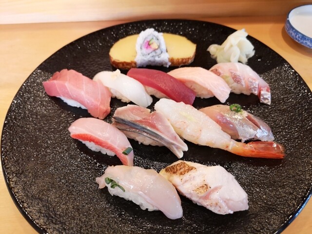 基本大漁?というようなネーミングのメニュー(¥3800)なのですが、その時に入っているネタによって構成されるので、毎回違うお寿司が食べられるのも楽しみです。
