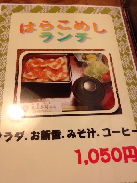 その他に、にぎりやちらし寿司などのランチもすべて1,050円となっています。