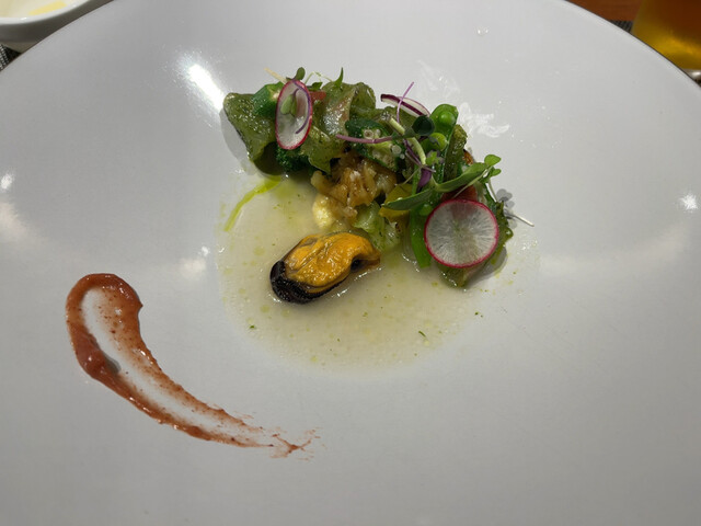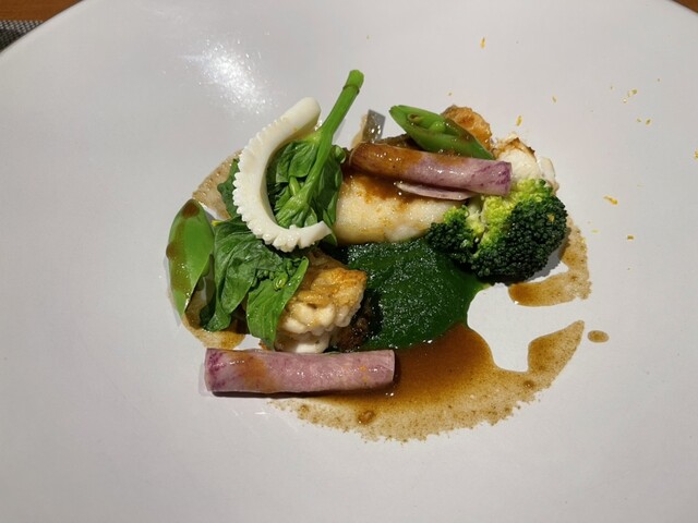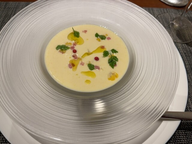 ごぼうのスープは初めて食べましたが、なかなか風味はよく、中のフォアグラは絶品でした。