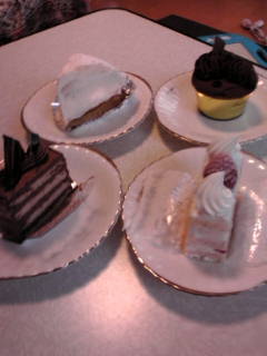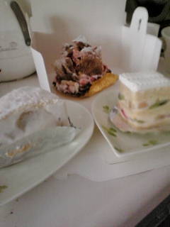 好評のショートケーキ、スペシャルパイを注文。生クリームが美味しいとのことなので、名前は忘れたが、生クリームとバナナを使ったタルトのケーキ、ロールケーキを購入。