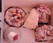 中のクリームはピンク色でイチゴと洋酒のような風味を感じる。