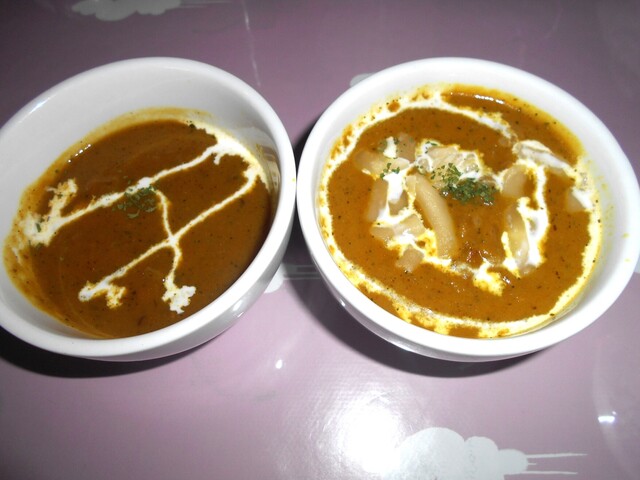 最初に出されたチキンスープがピリリと辛い香辛料で美味しかったです。
