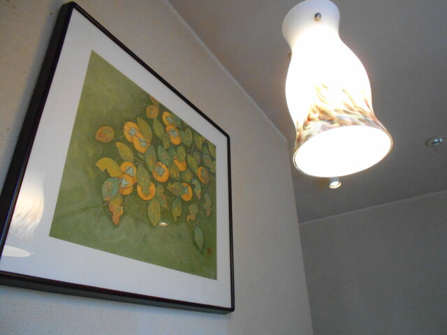 座った椅子の左横の壁に柿の絵が飾ってありました。