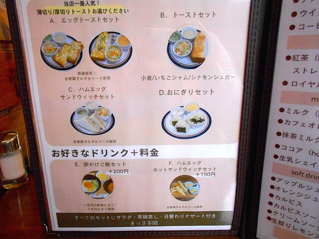 A厚切り(薄切り)エッグトーストのモーニングが一番お勧めです。