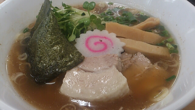 出てきたラーメンは今回も昔ながらな感じのラーメン。スープは煮干しダシが利いていて美味しいスープです。煮干しをウリにするにも個人的にはドロドロのスープよりこのぐらいのバランスがいいですね。麺は縮れ麺、チャーシューはバラ肉が二枚入ってますが、一枚はホロホロに柔らかく仕上がっていて、もう一枚はしっかり煮た歯ごたえのあるタイプでした。芸が細かいですね。全体的にいいバランスの美味しいラーメンでした。