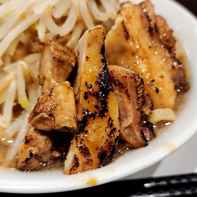スープとはテイストの異なるタレで焼きと炙りが入った“てり豚”が、ただでさえ食欲旺盛なジロリアンの食欲をさらに刺激します。
