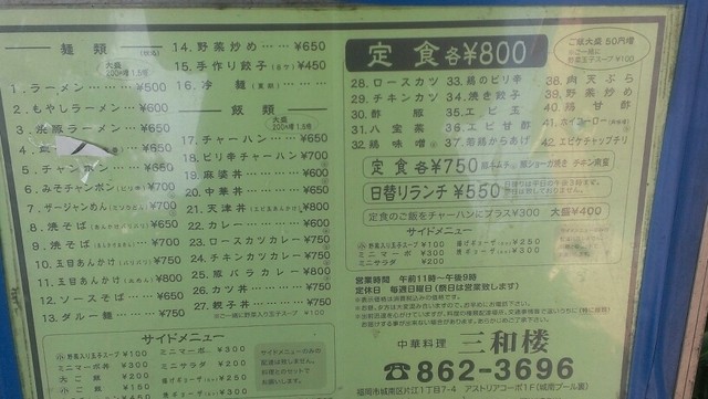ラーメンは細麺で醤油ベースのあっさりしたスープ。特に酢豚と皿うどんがお気に入り。こないだは天パって頭では皿うどんを注文したのに口から発したのは何故かちゃんぽん!
