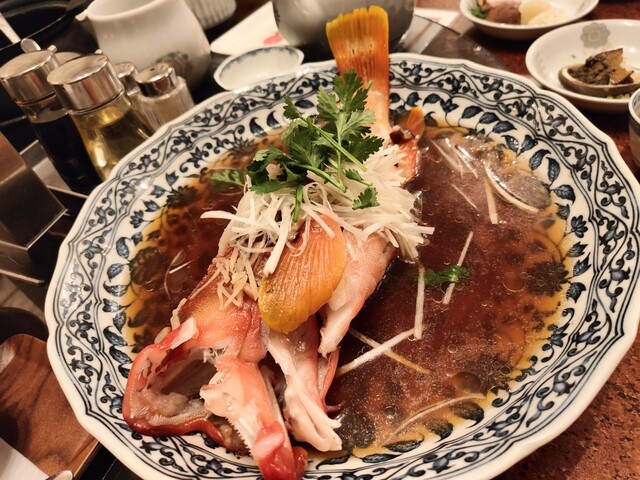 そろそろ満腹…と思う辺りで追撃が来る恐ろしい店こと龍鳳、アキレス腱のピリ辛煮込みを登場さす。紹興酒が一瓶消失し迷わず二瓶目を追加。安定のハタの清蒸めっちゃ美味〜〜〜からの牡蠣チャーハンで旨味の暴力キターーー
