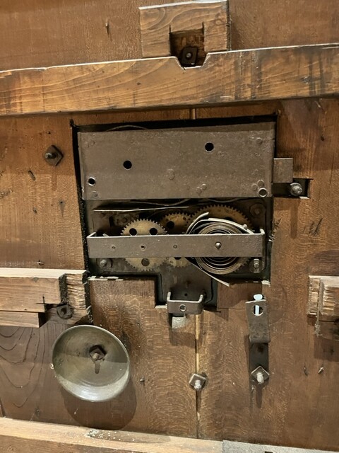 蔵の扉を再利用されている。鍵は使われていないけど、仕組みが見える。
