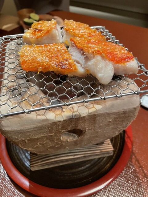 金目鯛の炭火焼きの皮のパリパリさ加減