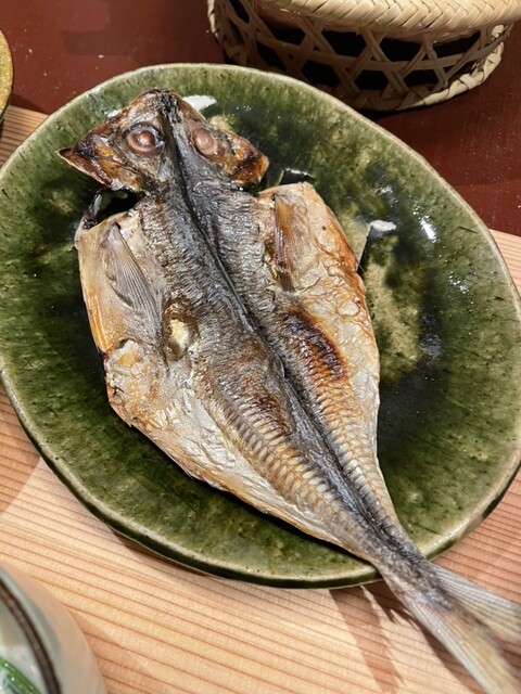 焼きたての鯵、地元の渋柿を処理した柿も良かったけど白米がそれだけで美味しく。