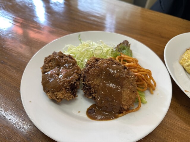 メンチカツはしっかりした味でデミソースがよく合う!
