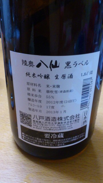 陸奥八仙・黒ラベル・華想い純米吟醸・スペック