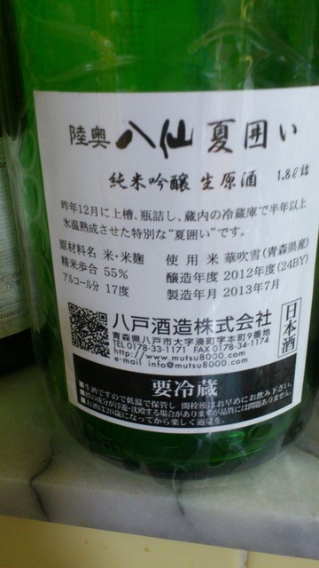 陸奥八仙・黒ラベル・華想い純米吟醸