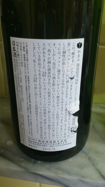 やまユ 純米吟醸 改良信交 24BY ラベル裏