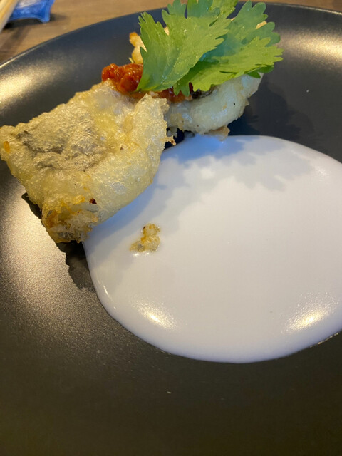トムカーガイのスープをさらに凝縮させたソースで頂くハモのフリット。甘味のあるチリソースで味付け、超濃厚トムカーソースがハモの旨みを120%美味しく包み込んでます。感動。