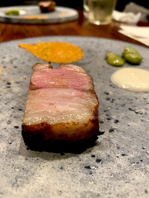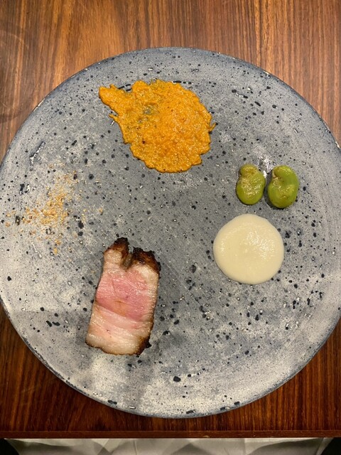 オープンは2021年の12月、兜町の『KABUTO ONE』の1階です。伊藤氏は天才なんじゃないかと思いますが、未だに東京のフレンチやイタリアンのレストランで研修させてもらっているんだとか。また、食材の生産者さんを訪問したり、漁師さんを訪ねたり、畑や山に行ったり。『うちの料理は、国内外で学んだ様々なことが生かされているんですよ。』と仰られる通り、飽くなき探究心と自らが楽しみながら新しいものを生み出すポテンシャルが素晴らしいです。