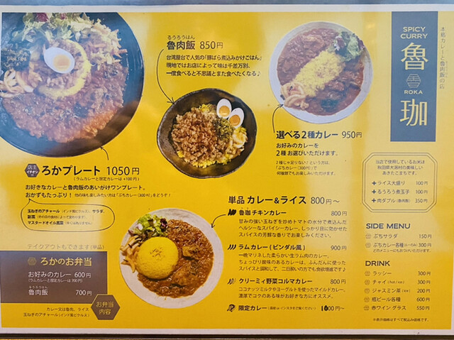 例えば、ろかプレートにぷちカレー2種追加して、さらに魯肉ダブルのオプションまで付けたとしてもたった2000円です。