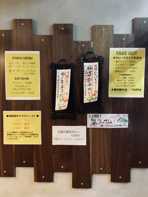 魯珈は3種類のレギュラーカレー「ラム」、「チキン」、「コルマ」と(この3種の完成度凄いんです)、1種類の限定カレーが通常のラインアップ。多くの方は『ぷちカレー』で複数のカレーを楽しみます。